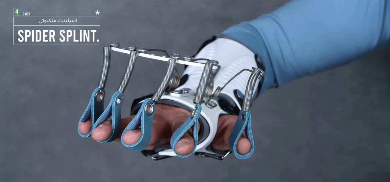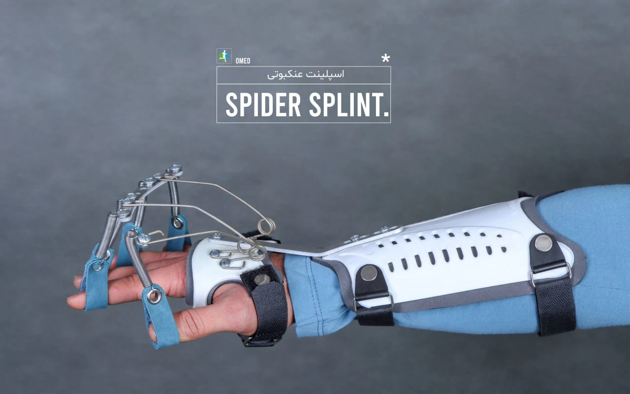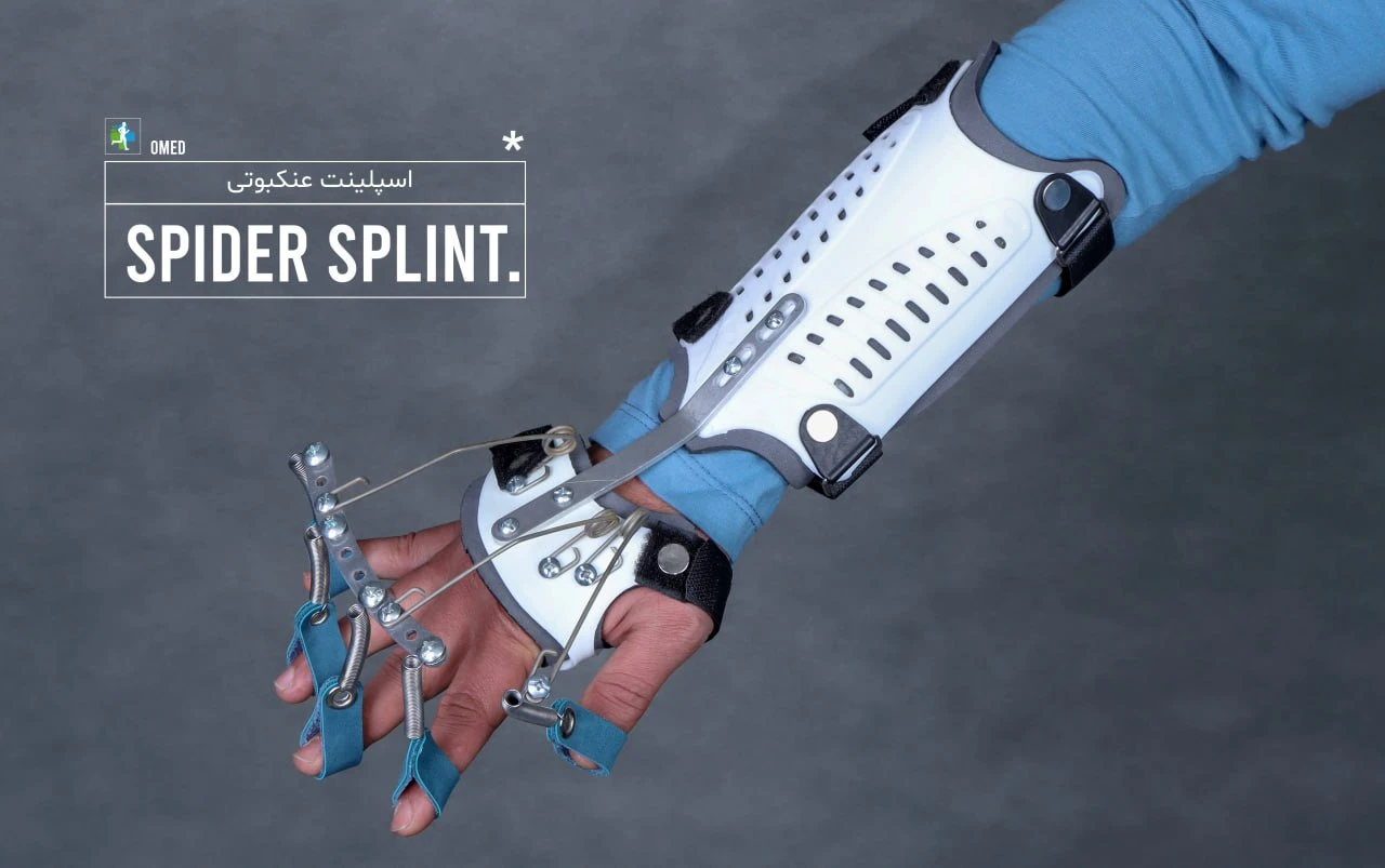 بریس یا اسپلینت دست اسپایدر (عنکبوتی) برای جلوگیری از افتادگی مچ و انگشتان دست در موارد آسیب به عصب رادیال مورد استفاده قرار می گیرد. مواد تشکیل دهنده ی این بریس شامل: مواد ترموپلاستیکی، فنرهای فلزی، فوم پلاستوزوت و چرم است که باعث استحکام بالا و وزن سبک این بریس شده است. اسپلینت دست عنکبوتی معمولا توسط پزشک برای مدت ۲تا۶ ماه تجویز می گردد و با انتقال نیروی فنر، مچ دست و انگشتان را در وضعیت نرمال و طبیعی قرار می دهد.